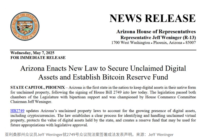 在去中心化货币席卷全球的时代浪潮中,加密货币的地位正悄悄发生着根本性的改变。 2025年5月,美国亚利桑那州一项颇具突破性的立法正式生效:该州成为美国首个建立“官方加密货币储备库”的州政府。这不仅是地方政府首次以法律形式认可并配置加密资产,更可能成为推动比特币和其他主流加密货币迈向“国家级资产”的转捩点。